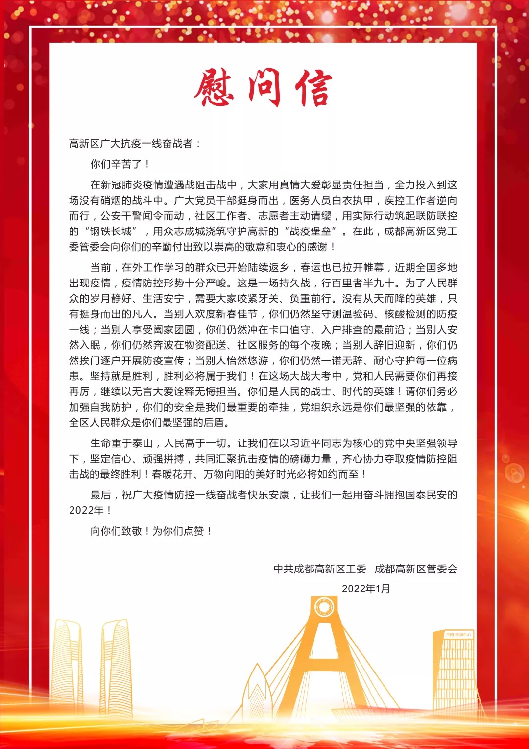 致成都高新區廣大抗疫一線奮戰者的一封信