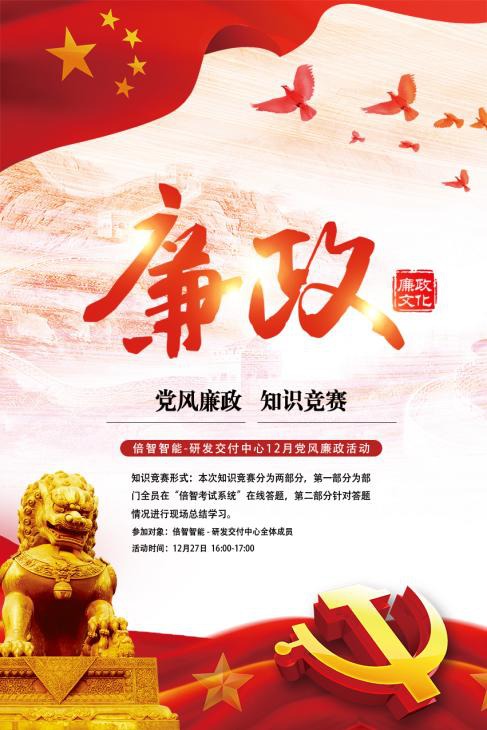 為進一步推進黨風廉政建設和反腐敗工作,12月27日,倍智智能數據運營有限公司運用自身技術能力,創新開展黨風廉政教育主題知識競賽瀏覽 : 5880分享